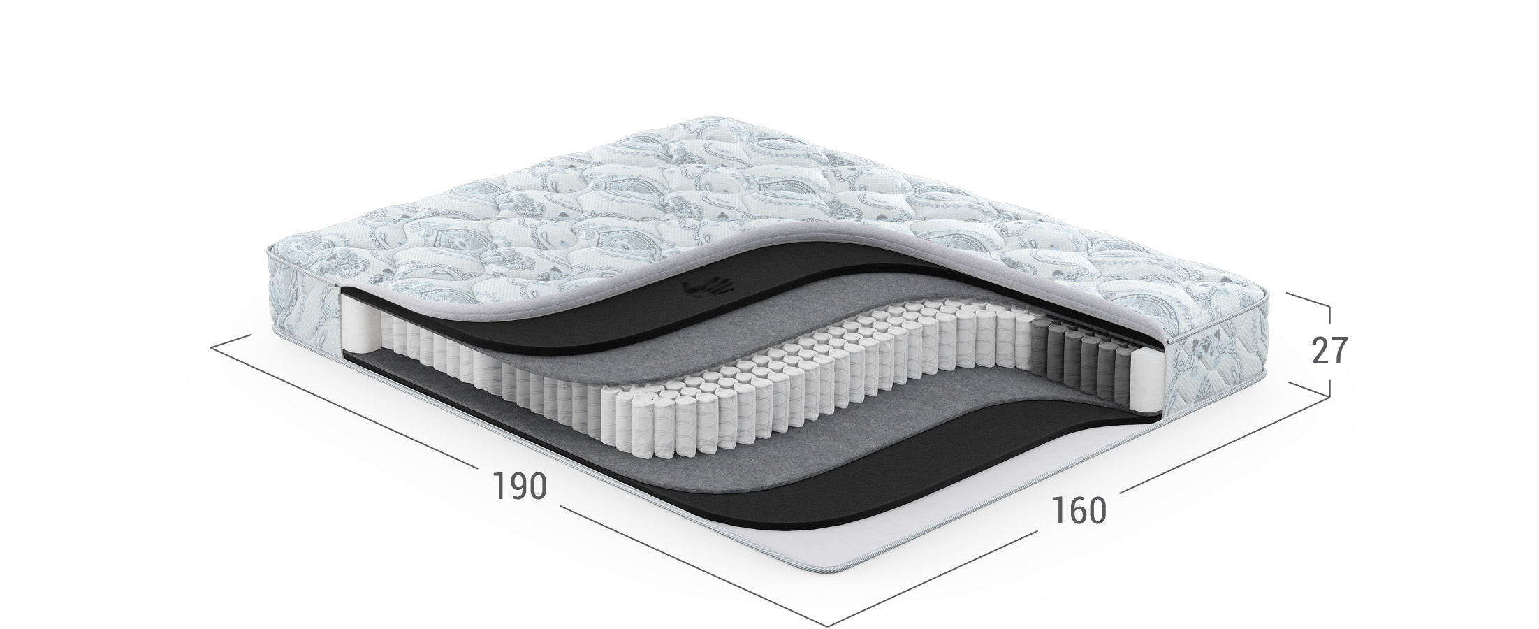 Повышает жесткость и плотность спального места, а также обеспечивает оптимальный воздухообмен благодаря объемной структуре материала. Улучшает эксплуатационные показатели матраса, не давая пружинному блоку механически воздействовать на комфортные слои.