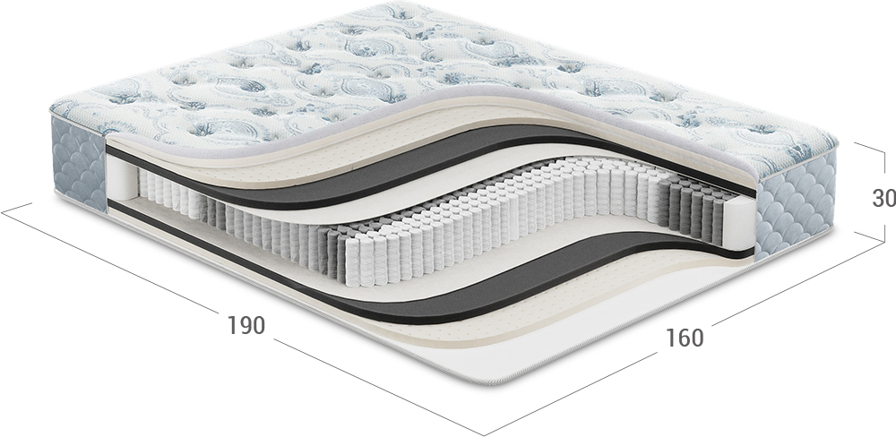Оказывает надежную поддержку и равномерно распределяет нагрузку на поверхности спального места, подстраивается под контуры тела и помогает сохранять его правильное положение на протяжении всего времени отдыха.