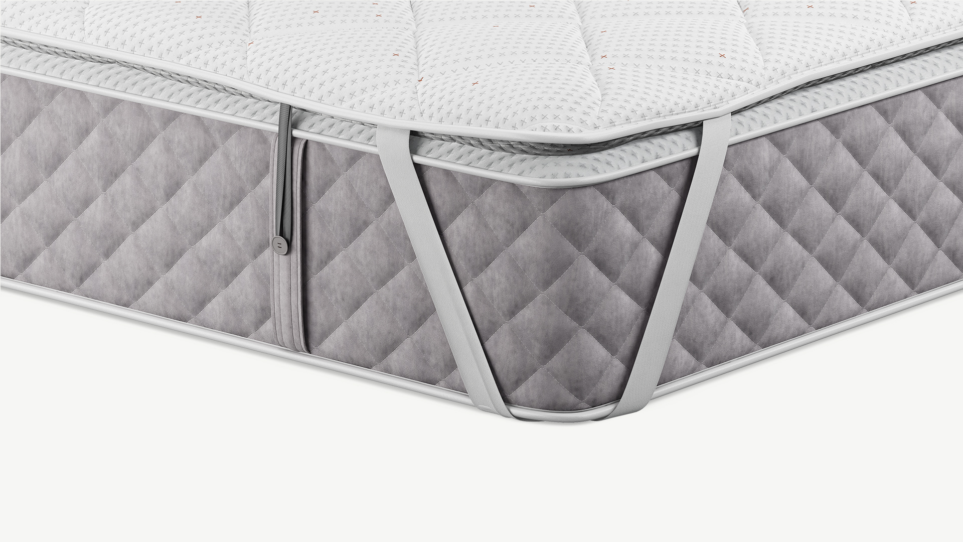 Дополнительно на топпере предусмотрены эластичные петли — для матрасов MOON в комплектациях Comfort и Prestige, оснащенных системой крепления на пуговицы по бокам.