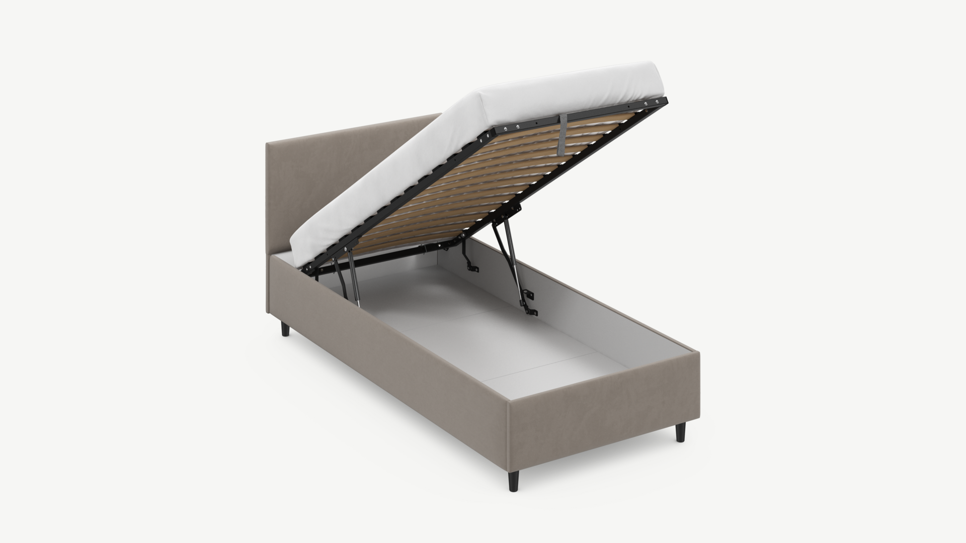 Вместительная емкость под кроватью без внутренних перегородок позволяет использовать для хранения вещей 100% пространства.