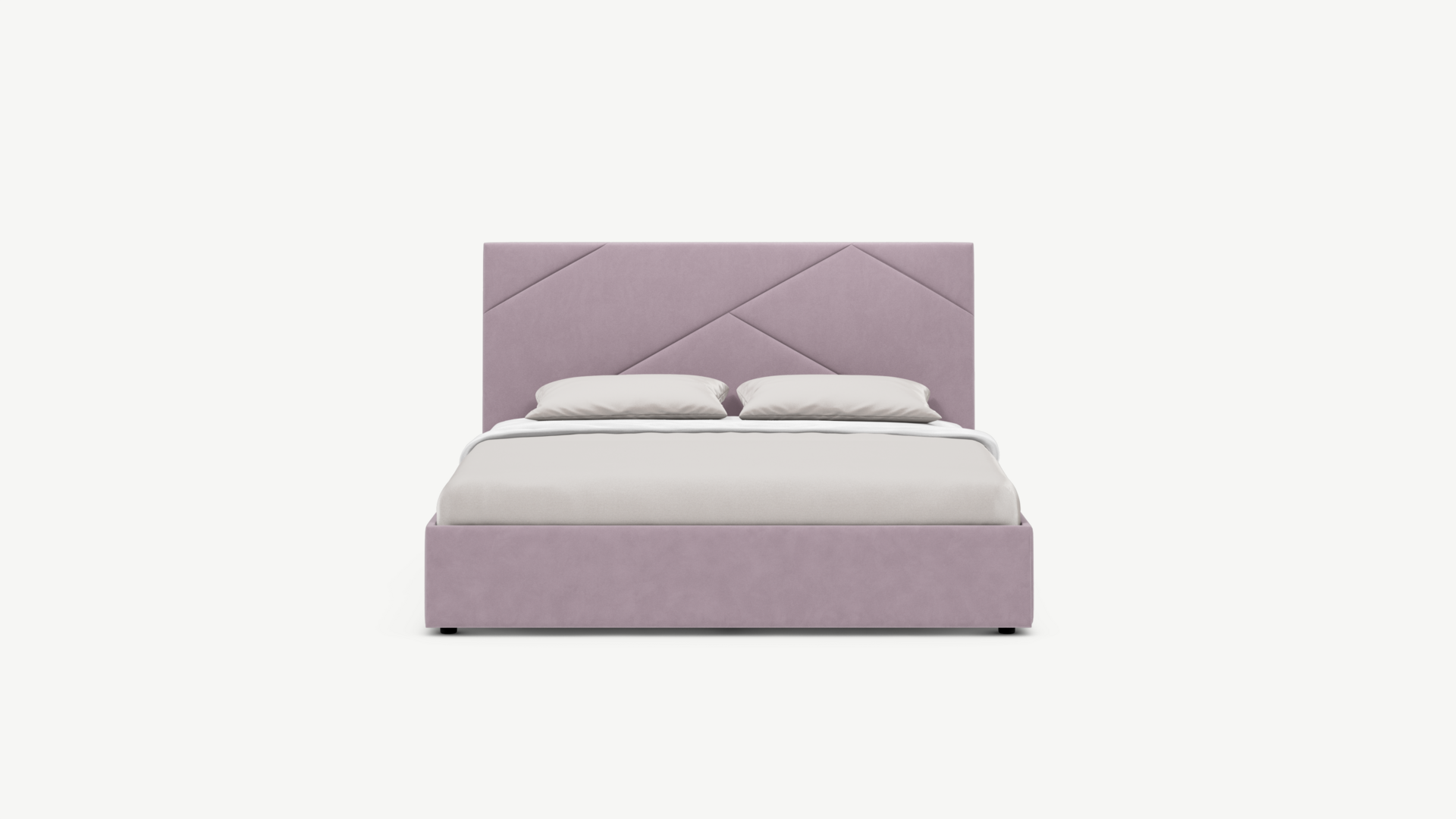 MOON FAMILY 1257 привлекает внимание оригинальным исполнением: широкие полосы ткани эффектно пересекают периметр изголовья, создавая на нем графический орнамент. Элегантным и практичным акцентом служат скрытые карманы, расположенные по его углам. Лаконичные формы объемных царг создают единый гармоничный образ и фокусируют внимание на центральном текстурном элементе кровати.