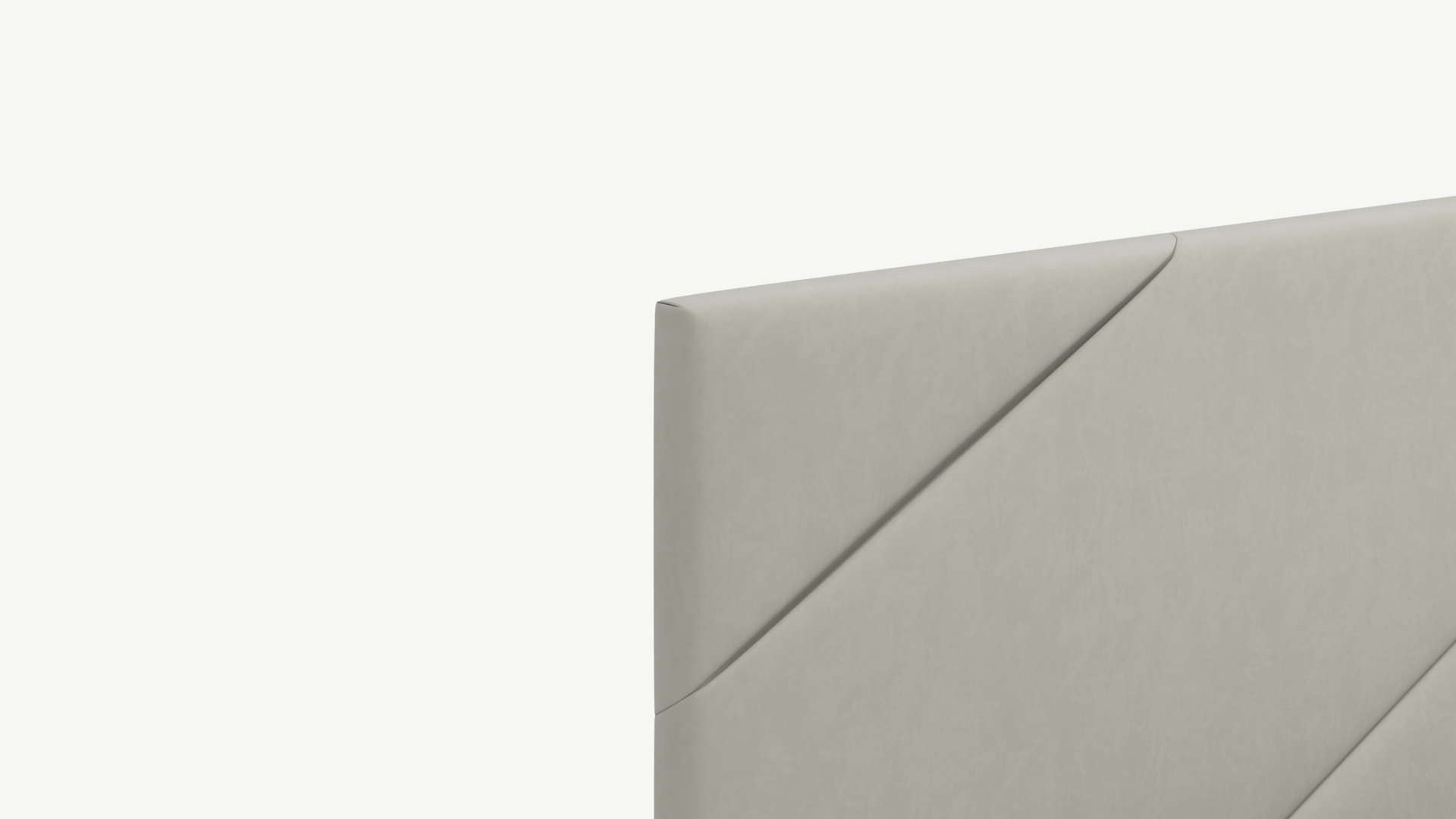 Элегантным и практичным акцентом служат скрытые карманы, расположенные по его углам. Лаконичные формы объемных царг создают единый гармоничный образ и фокусируют внимание на центральном текстурном элементе кровати.