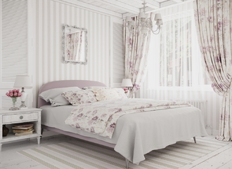 Фактура обивочного материала подбирается дизайнерами с учетом технологических и стилевых особенностей кровати.