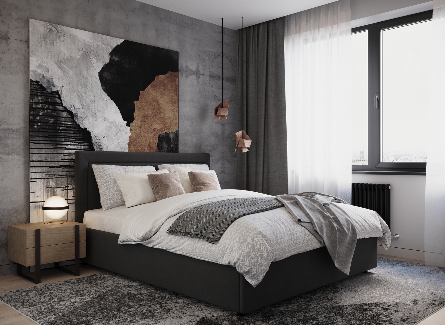 Создать гармоничный интерьер и завершить образ спальни помогут дополнительные аксессуары, например: тумбы, банкетки, подушки.