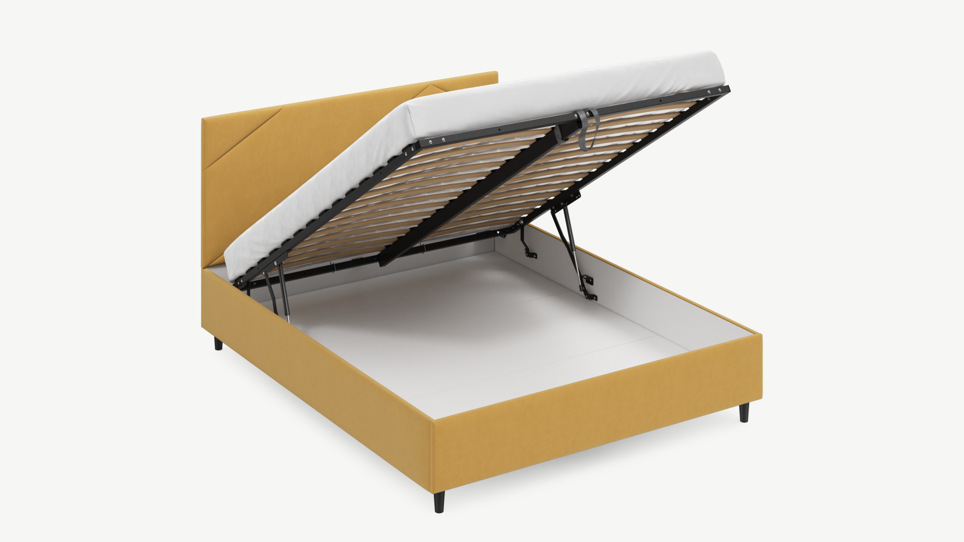• Скрытая под основанием вместительная емкость без внутренних перегородок позволяет использовать всю площадь подкроватного пространства для хранения вещей.
