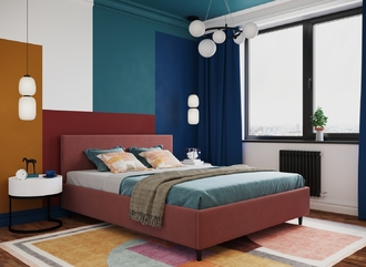 Фактура обивочного материала подбирается дизайнерами с учетом технологических и стилевых особенностей кровати.