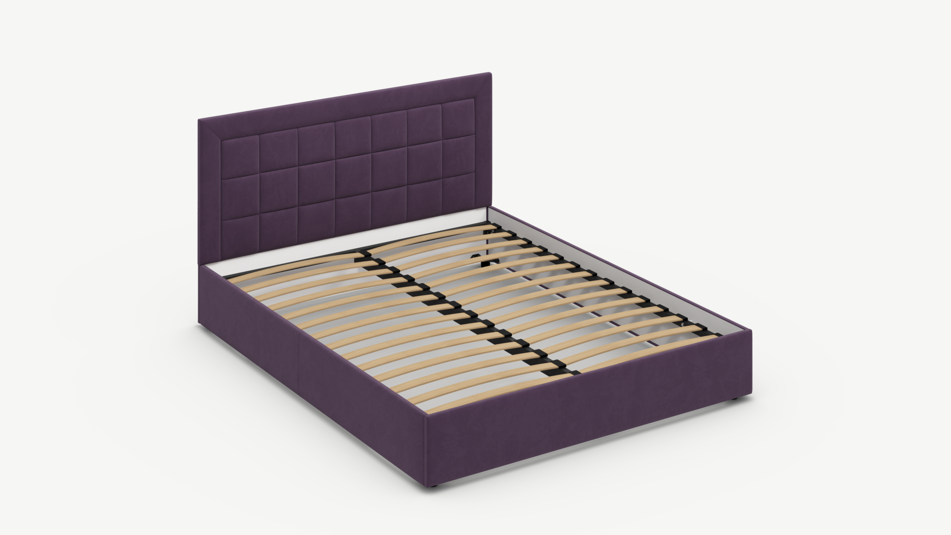 Изголовье декорировано рельефным рисунком стежки в крупный квадрат, получившим особую фактуру за счет глубины шва.