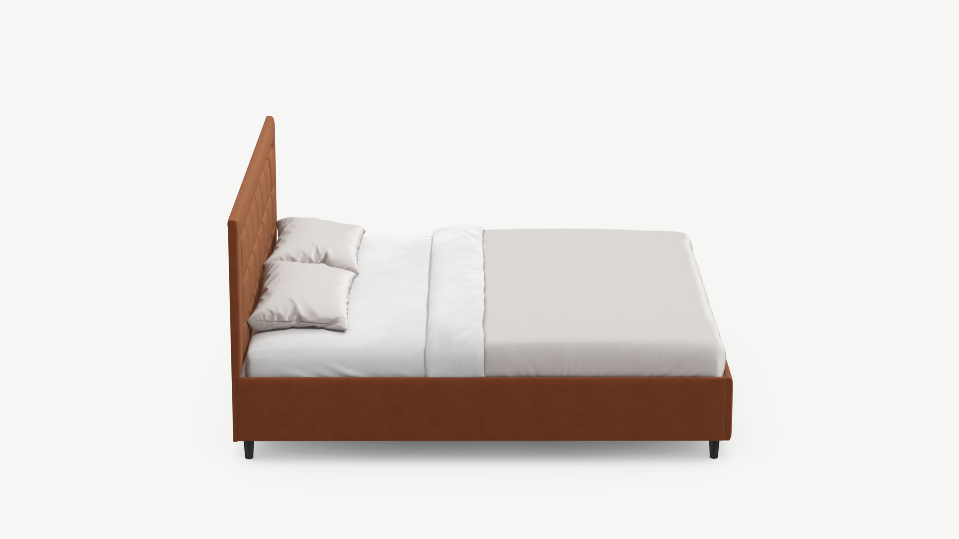 Изголовье декорировано рельефным рисунком стежки в крупный квадрат, получившим особую фактуру за счет глубины шва.