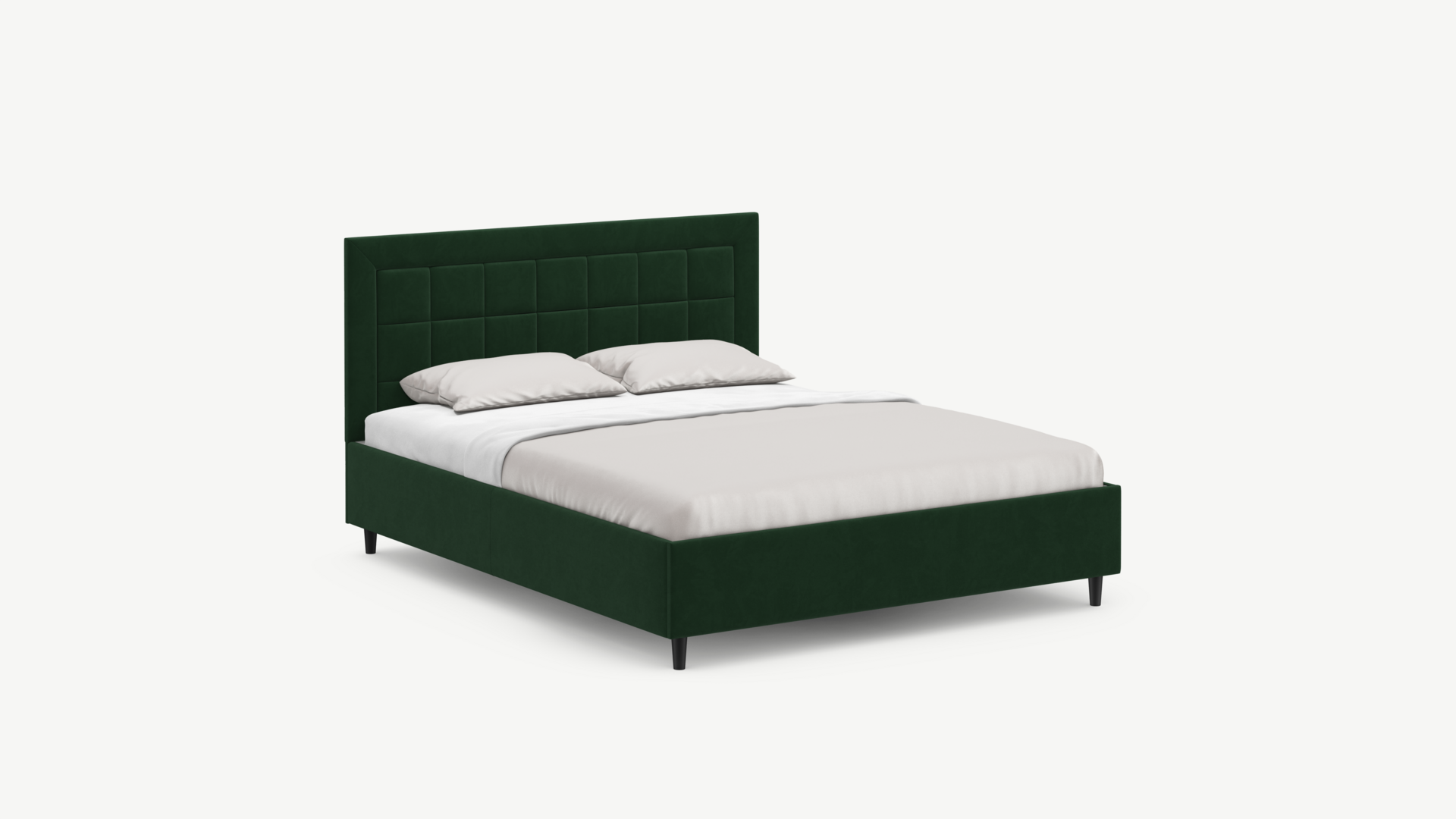 Стежка помещена в центр изголовья и обрамлена, словно картина. Объемные царги завершают цельную фигуру кровати и становятся гармоничным дополнением ее образа.