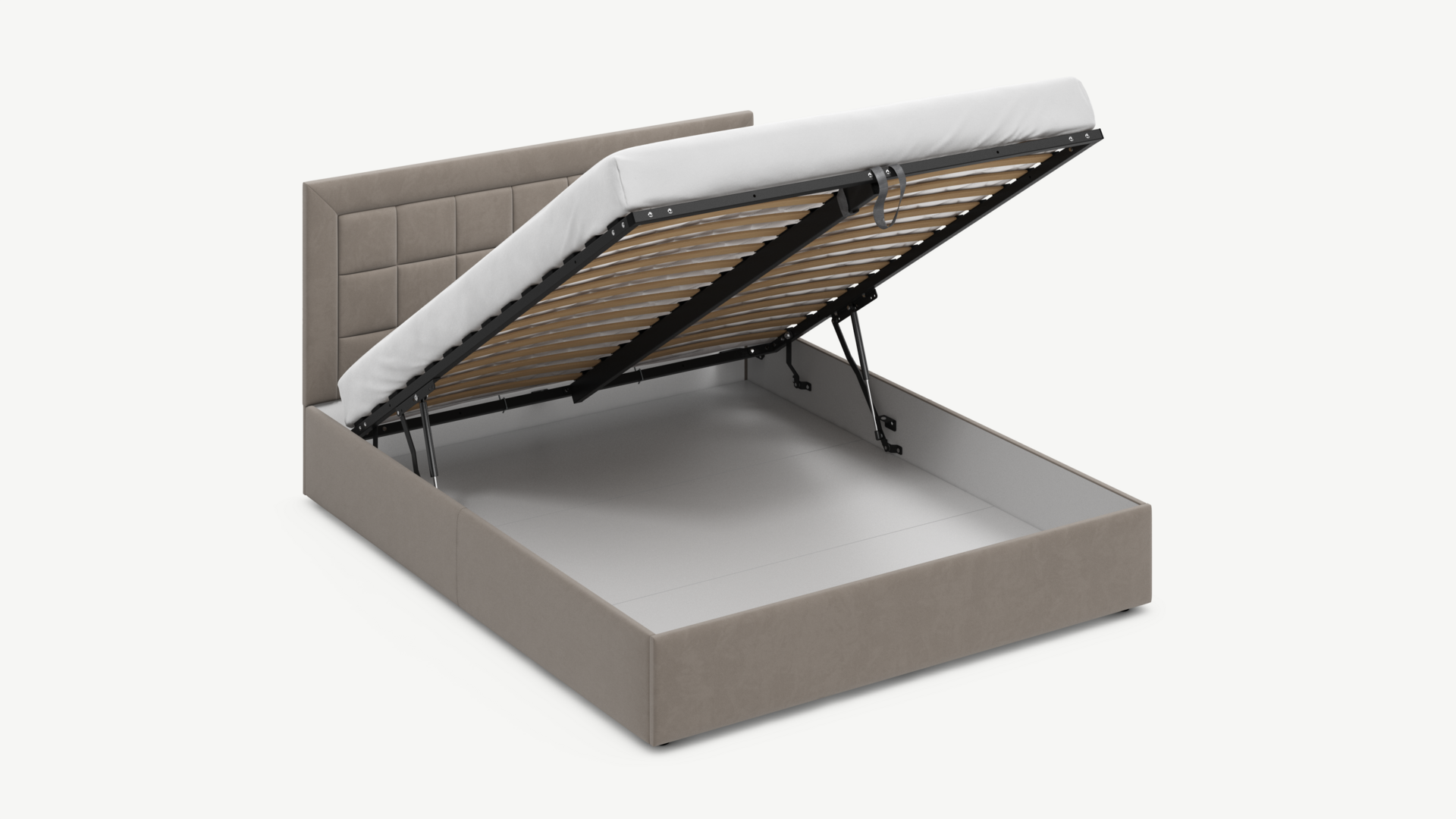 Вместительная емкость под кроватью без внутренних перегородок позволяет использовать для хранения вещей 100% пространства.