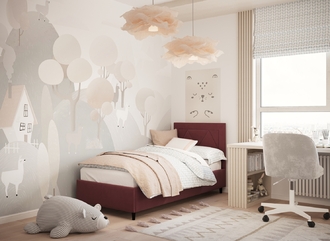 Фактура обивочного материала подбирается дизайнерами с учетом технологических и стилевых особенностей кровати.