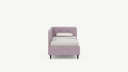 Угловая односпальная кровать MOON FAMILY 1253 с мягкой спинкой и изголовьем обладает округлыми формами, привносящими в интерьер нотки нежности. Изголовье, украшенное пуговицами, добавляет окружающему пространству шарм и уют. Высокие опоры придают кровати визуальной легкости, а также обеспечивают удобство во время уборки.