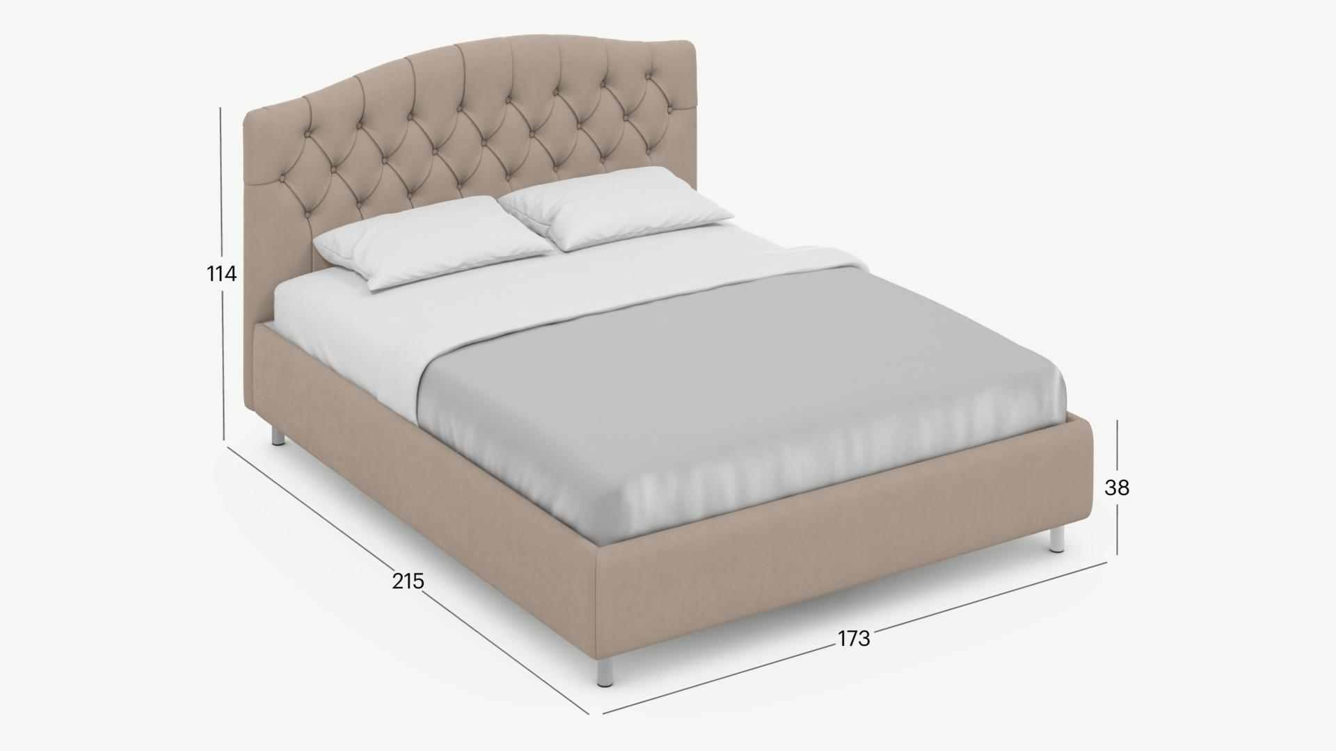 Кровать MOON 1157 создает ощущение праздника. Фигурное изголовье с классической каретной стяжкой формирует торжественный образ кровати, привнося в интерьер элементы дворцового стиля и роскоши.