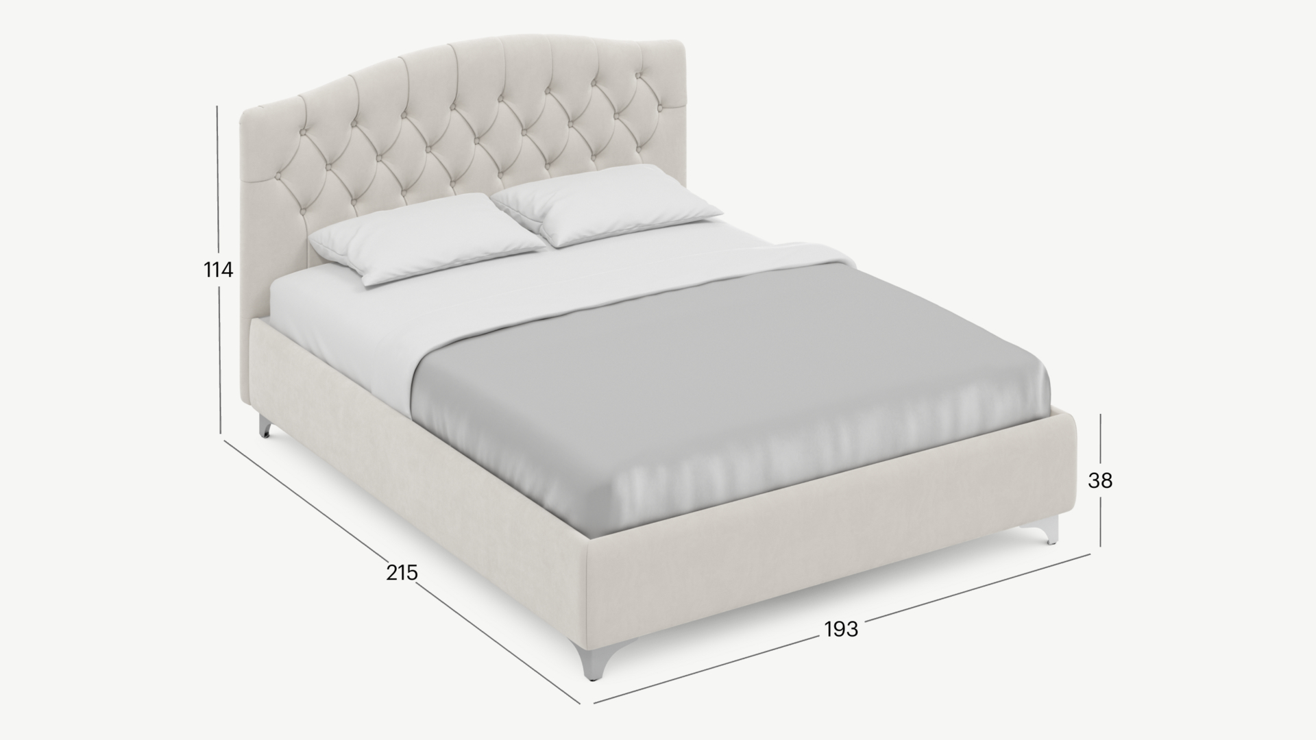 Кровать MOON 1157 создает ощущение праздника. Фигурное изголовье с классической каретной стяжкой формирует торжественный образ кровати, привнося в интерьер элементы дворцового стиля и роскоши.