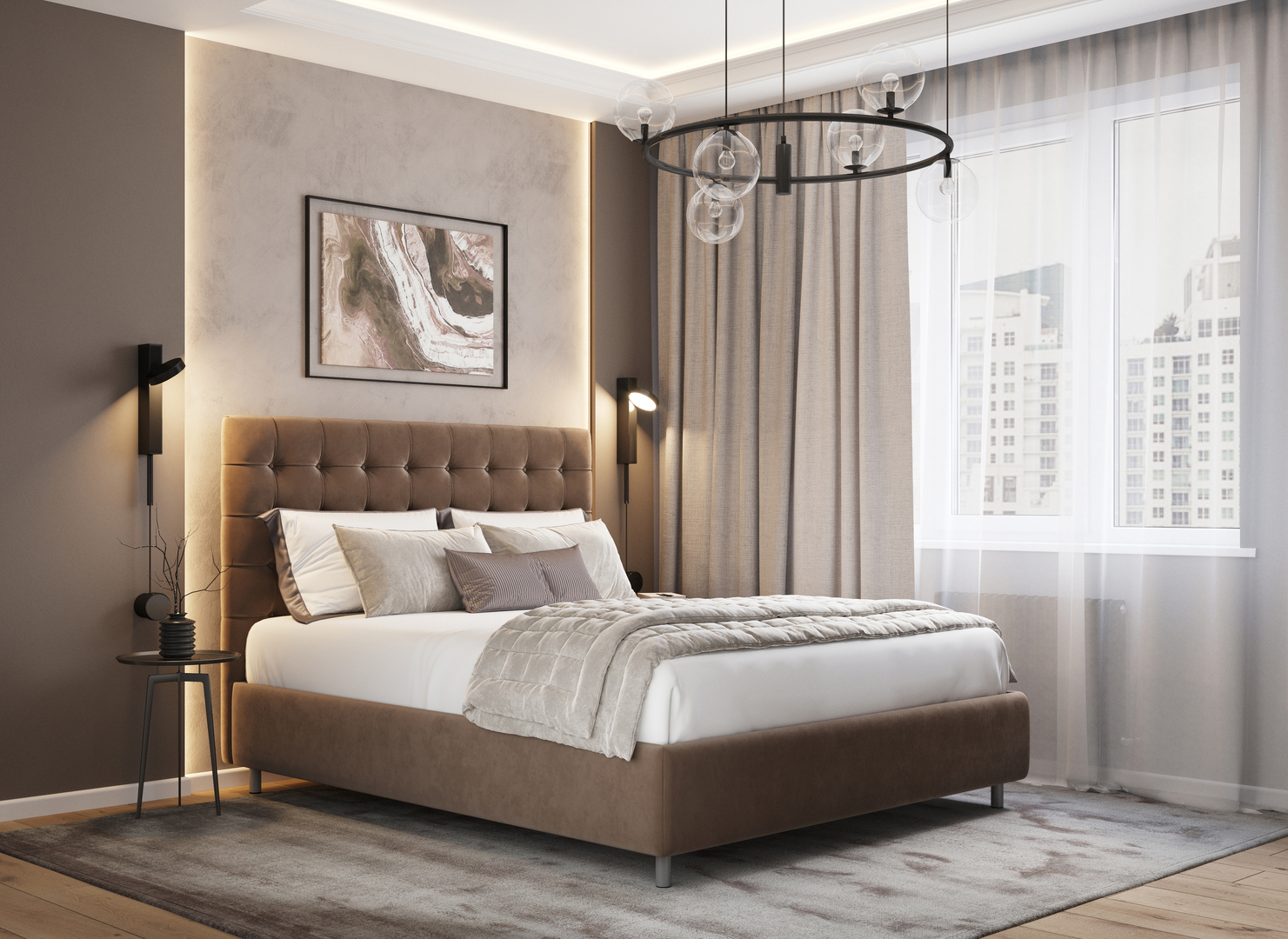Творческий подход к выбору обивочного материала меняет образ дизайна. Например, однотонный гладкий велюр придает кровати эстетическую утонченность, в то время как фактурное тиснение на ткани усиливает игру перехода оттенков и выглядит особенно оригинально. Оформите образ кровати, выбирая обивку, которая подчеркнет звучание Вашей спальни и отразит Ваш вкус.