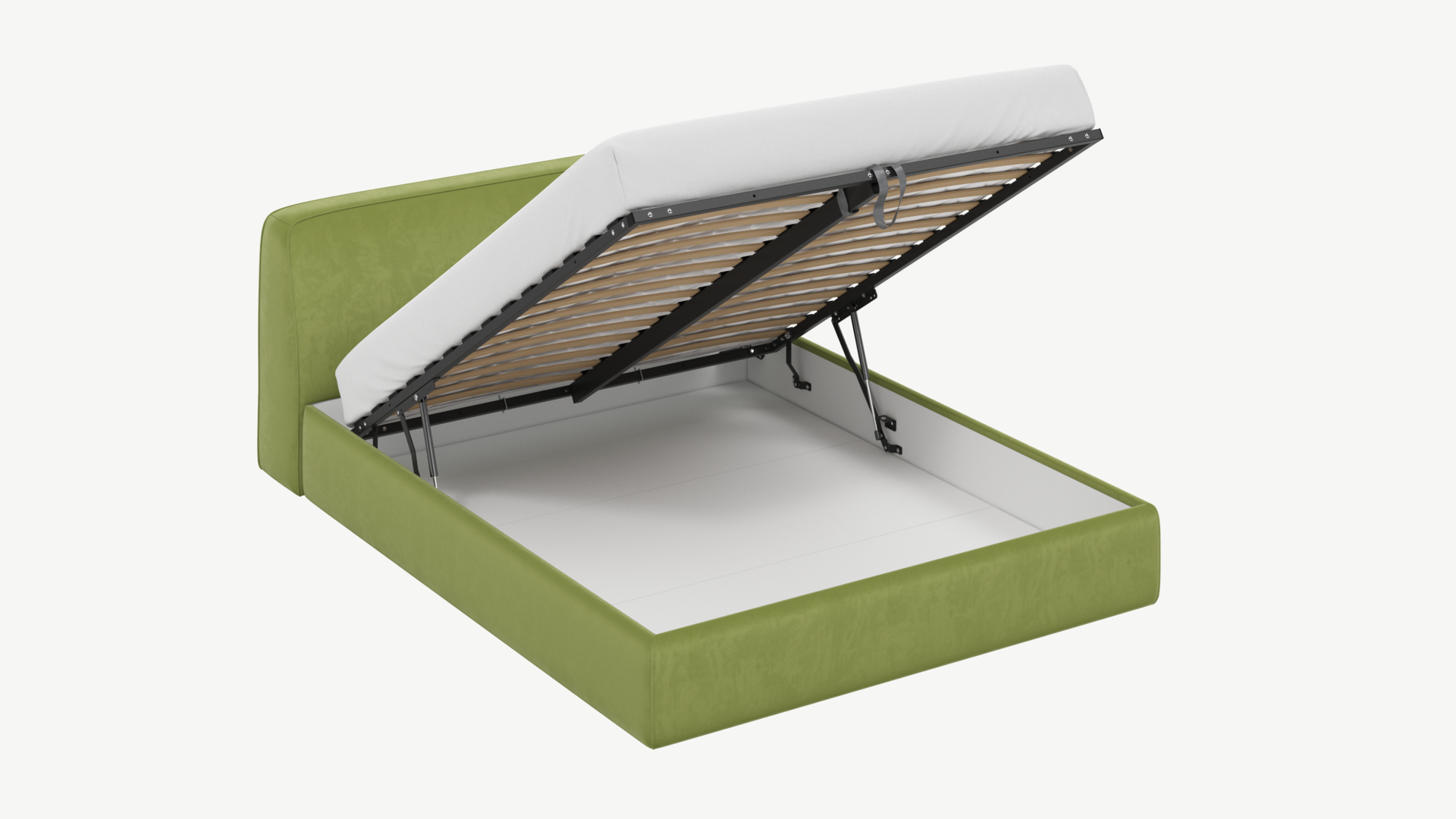 • Скрытая под основанием вместительная емкость без внутренних перегородок позволяет использовать всю площадь подкроватного пространства для хранения вещей.
