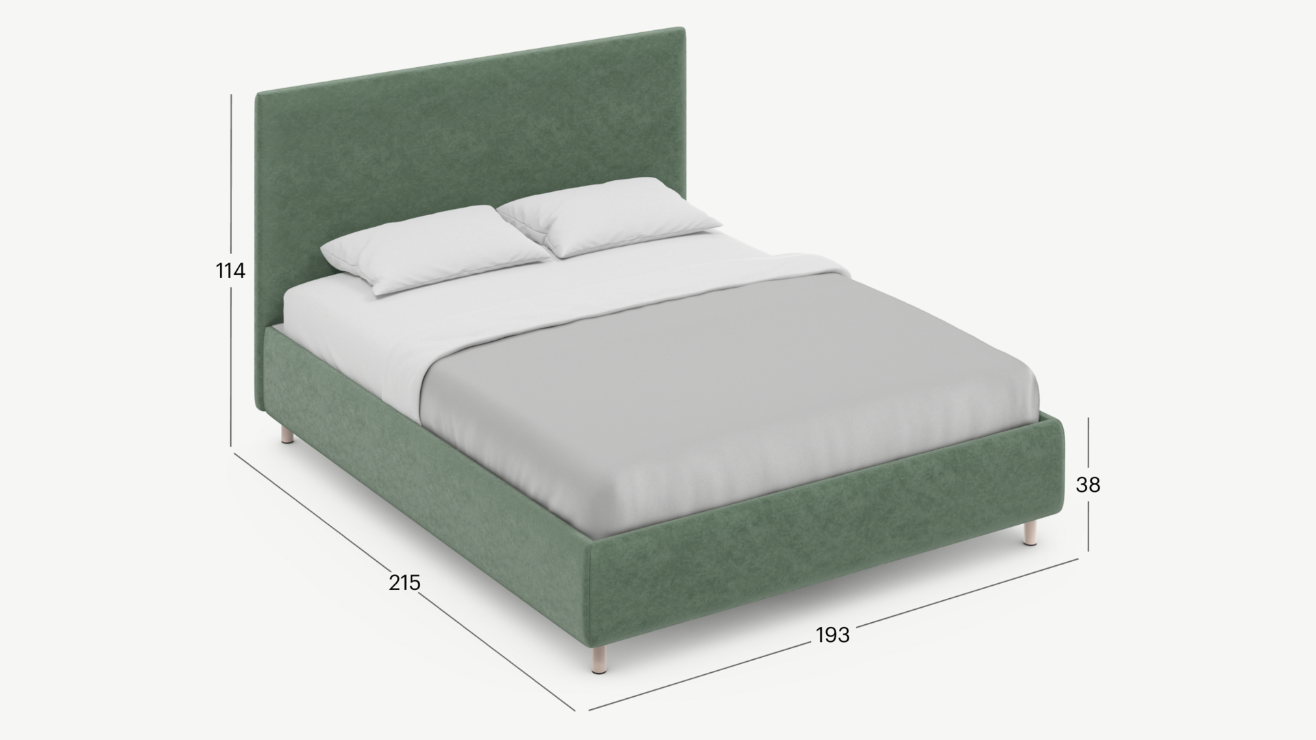 Борт матраса 20 см. В комбинации с высотой ножек нашей кровати, высота спального места