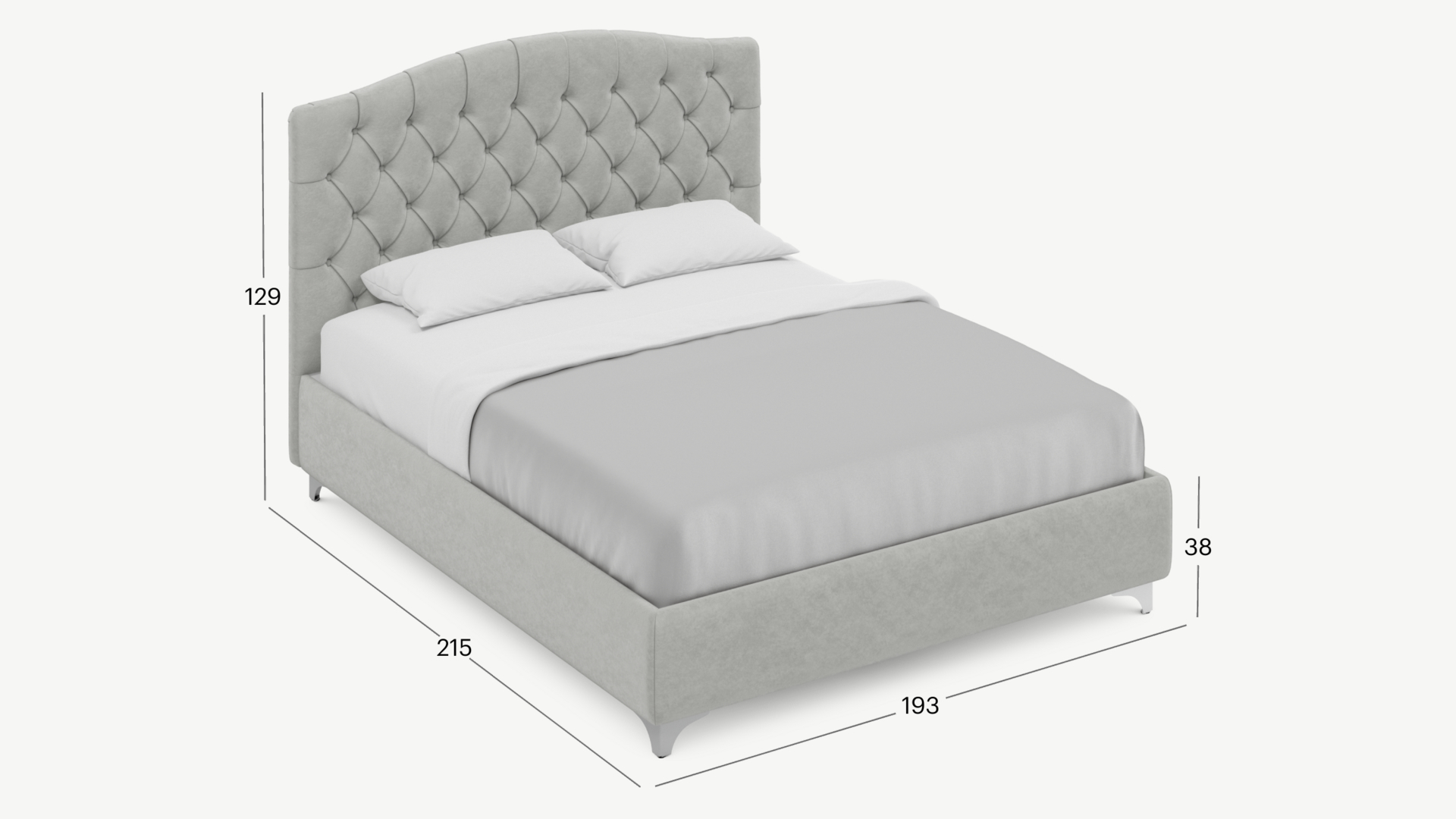 Кровать MOON 1157 создает ощущение праздника. Фигурное изголовье с классической каретной стяжкой формирует торжественный образ кровати, привнося в интерьер элементы дворцового стиля и роскоши.